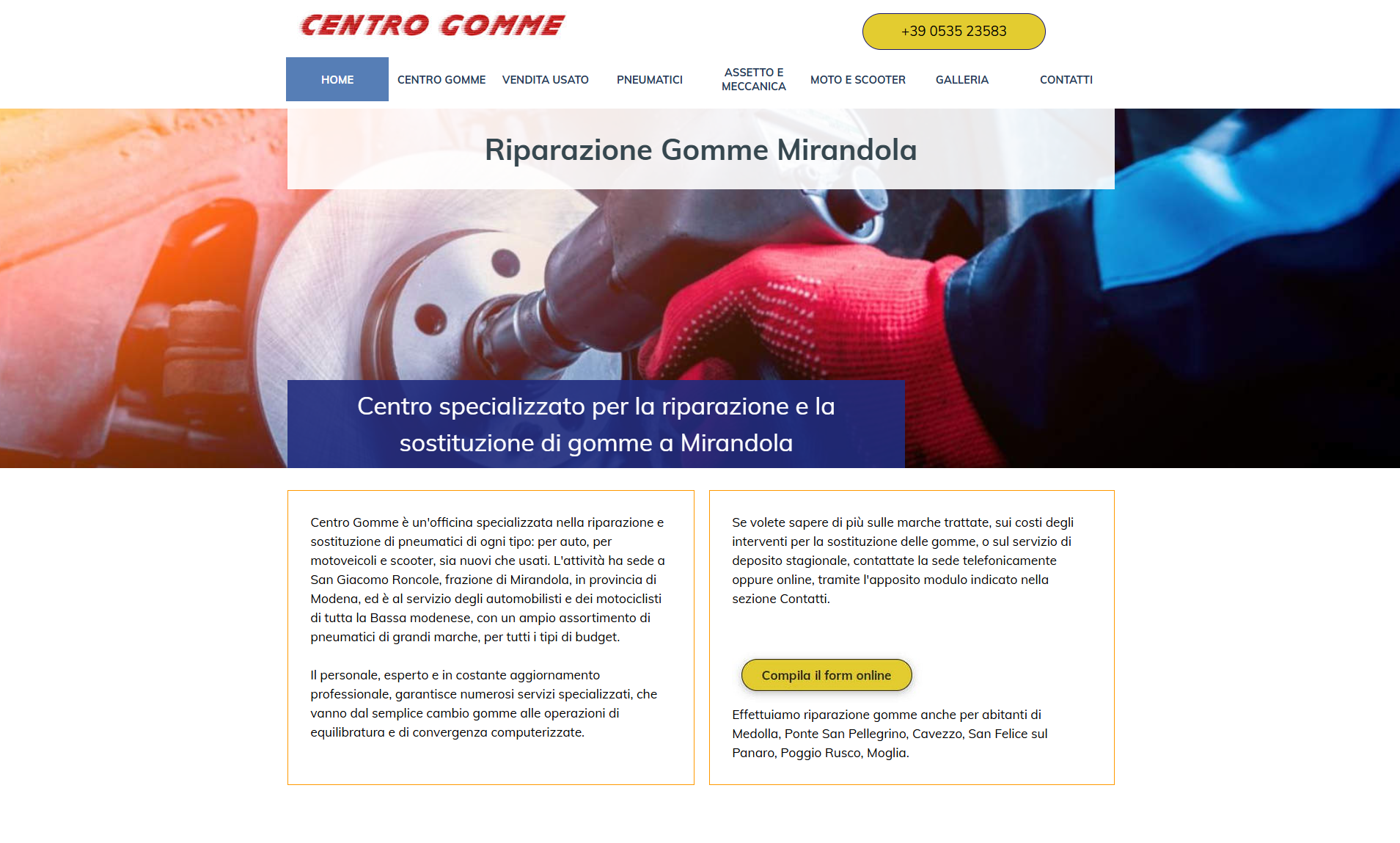 Centro Gomme è un sito web per un’officina gommista situata a Mirandola, in provincia di Modena, specializzata nella vendita e assistenza di pneumatici per auto, moto e veicoli commerciali, con particolare attenzione al deposito stagionale.